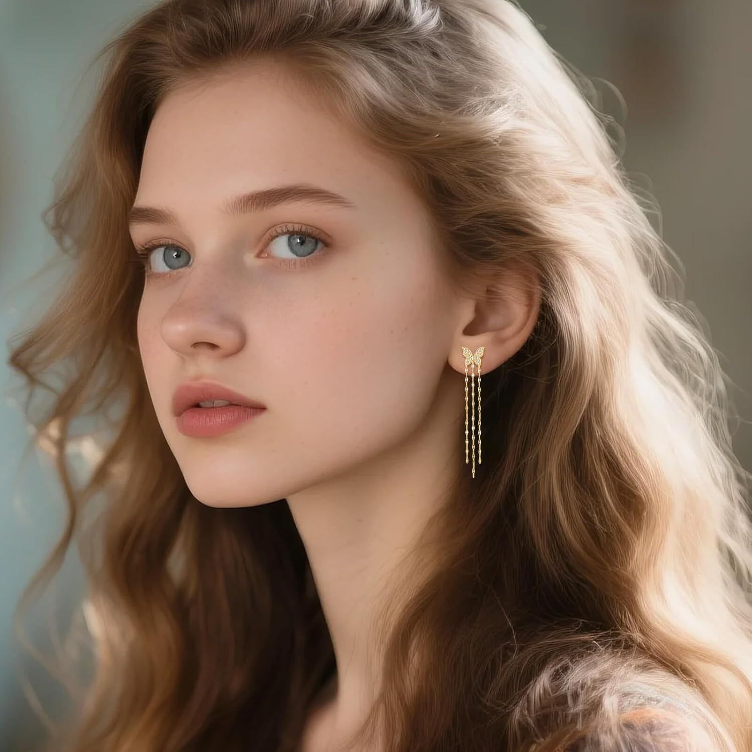 About SISGEM JEWELRY: SISGEM JEWELRY was born to provide a favorite jewelry for women. About the 14k gold earring: The fineness of a precious metal object represents the weight of fine metal therein, in proportion to the total weight which includes alloying base metals and any impurities. Alloy metals are added to increase hardness and durability of jewelry, alter colors. Karats measure the parts per 24, so that 14 karat = 14⁄24 = 58.5% Looking Forward YOUR STORY: Every piece of SISGEM jewelry will have a beautiful story. It may be about the person who gave the gift, or maybe about the one who is wearing jewelry. We look forward to the starting of such a story. A Gift for Yourself: Expecting that SISGEM jewelry make your heart sing every time you wear them and that speak to your core. A Great Gift Idea for Her: Anniversary Birthday Graduation Thanksgiving Day Date It Will Be A Beautiful Story Between YOU and HER. Product Specifications: Metal:14k Gold Measurement: Butterfly: 9 mm Total length: 50 mm Package Includes: A pair of 14k gold earrings1 x Gift Box Caring for your jewelry: 1.Separated it from hard items to prevent scratches and store it in a fabric-lined jewelry box or pouch. 2.Do not expose to harsh chemicals such as cosmetics, hairsprays, perfumes, chlorinated water. 3.To clean gold jewelry, use warm water, a mild soap, and a soft bristled brush, if needed.