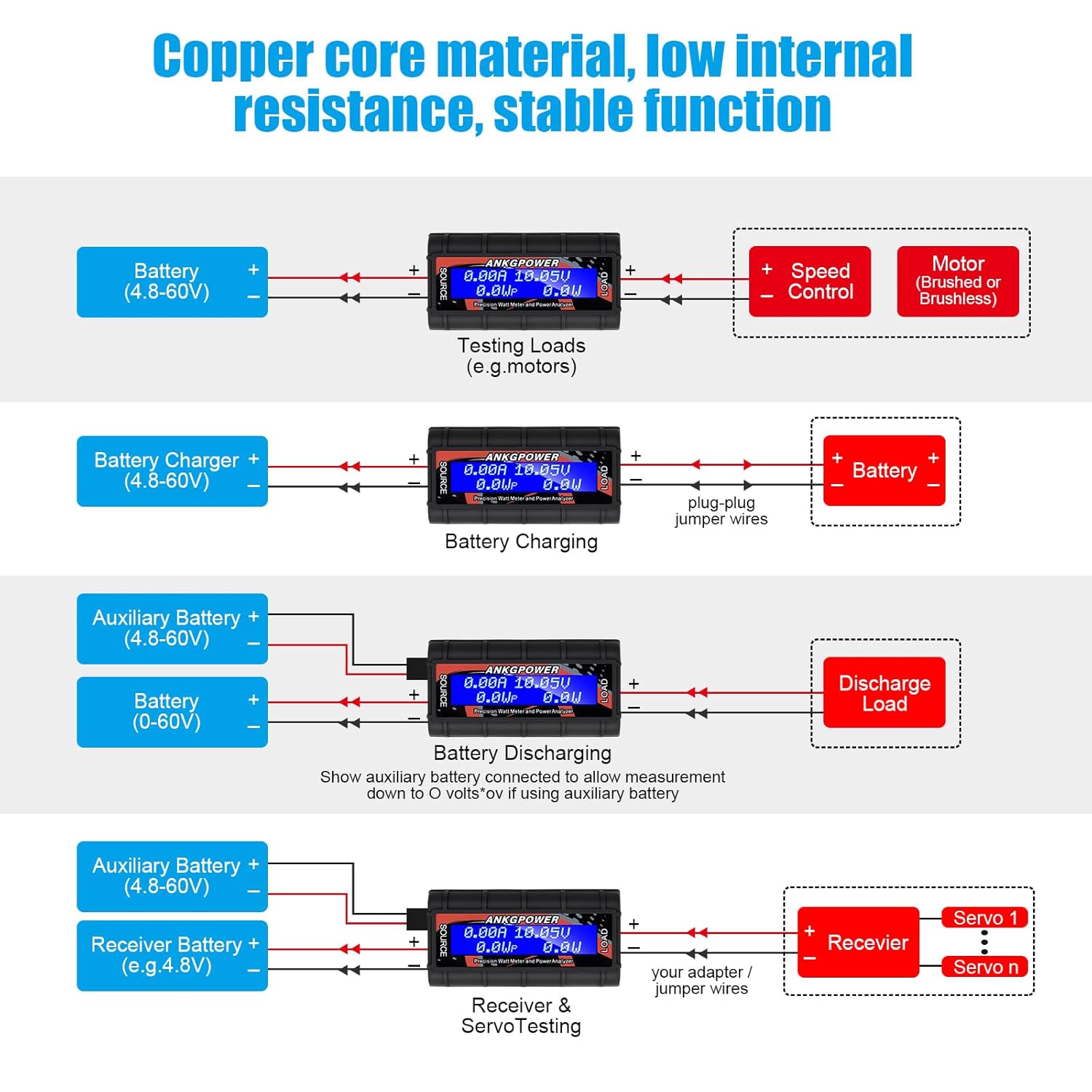 200A Power Analyzer with power connectors, High Precision RC with Digital LCD Screen for voltage (V) current (A) Power (W) Charge(Ah) and Energy (Wh) Measurement Two sets of 50A gray power connectors