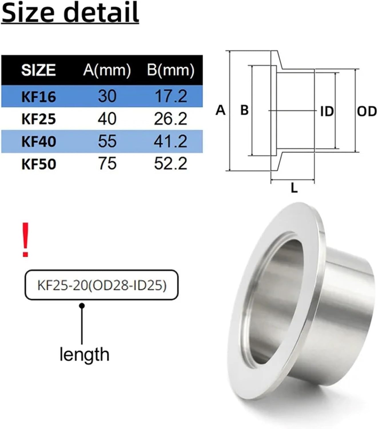 Stainless SteelFK Weld FlangeMaterial: 304 Stainless SteelProcessing Technology: Mechanical FinishingProduct Specifications: KF10/KF16/KF25/KF40/KF50Welded Joint Length: 20mm,30mm,40mm,50mm.==========Hign-concerned Chemical : NoneHose Inner Diameter : 25mmConnection : FlangeTechnics : ForgedType : FlangeMaterial : STAINLESS STEELCertification : None