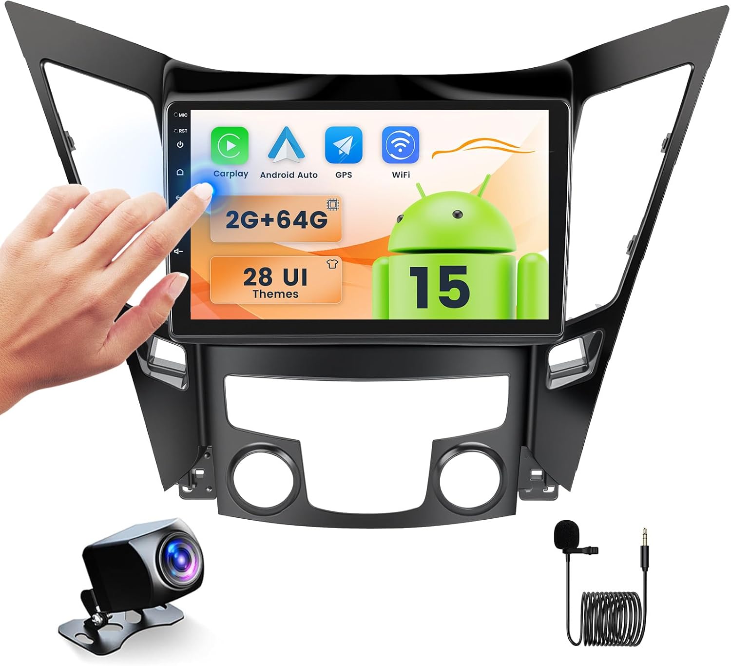 | BuiltIn Media | Android Car Radio for Hyundai Sonata 2010-2015, GPS Antenna, AHD Rear View Camera, Microphone, Power cable, USB Cable, Camera Input Cable, RCA Cable, User Manual |