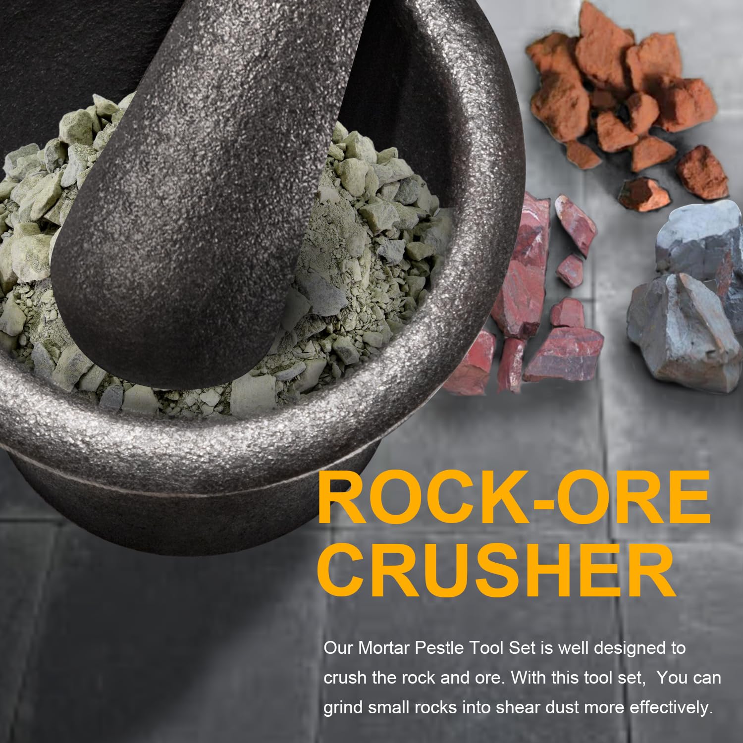 Good for crushing up ore to test in the field or to do a assay. Use it to find out if ore/rocks contain gold or other precious minerals.
