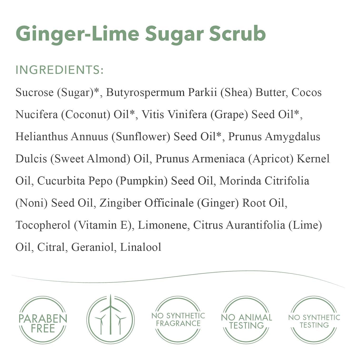 | Active Ingredients | Sugar, Shea Butter, Coconut Oil, Grape Seed Oil, Sunflower Oil, Sweet Almond Oil, Vitamin E, Apricot Kernel Oil, Pumpkin Seed Oil, Noni Oil, Ginger Root Oil, Lime Oil., vitamin_e |