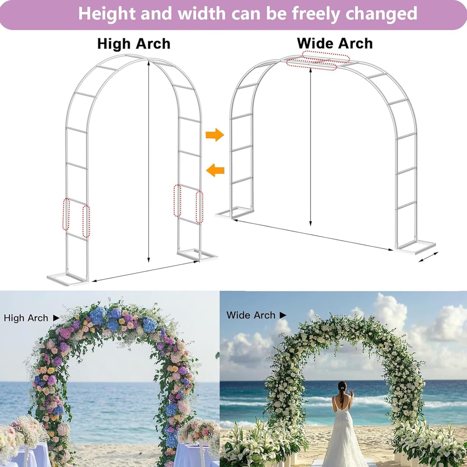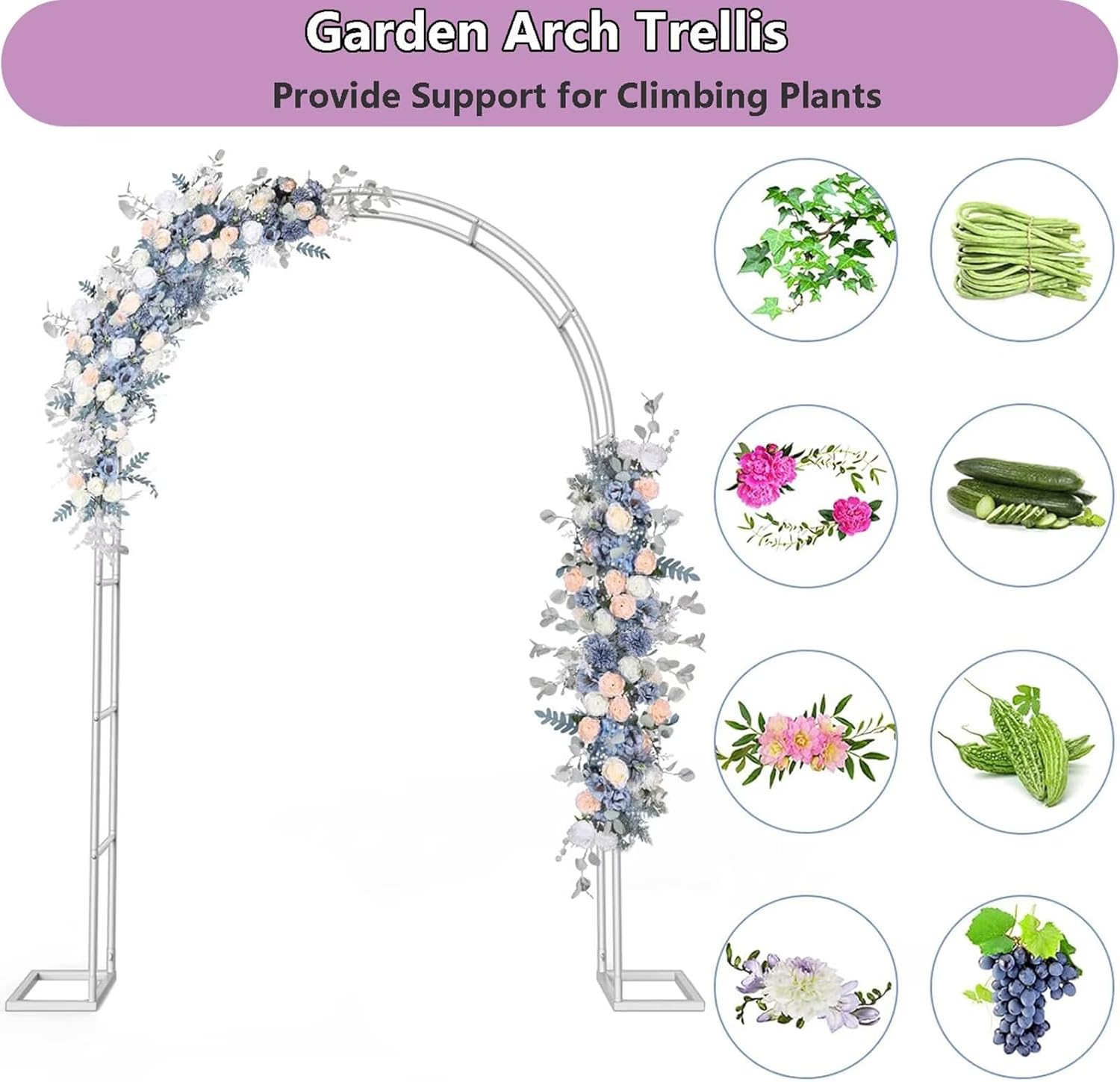 🌹 Premium Heavy Duty Metal Garden Arch Trellis & Wedding Arbor Ultimate Versatility for Gardens & Grand Events,Transform your outdoor area with our Heavy Duty Metal Garden Arch Trellis. This robust Garden Arch Arbor is the perfect, permanent structure for plant support and event decoration.Product Information:Name: Garden ArchDimensions: W0.8 x H2m / W1.2 x H2.2m / W1.4 x H2.3m / W1.8 x H2.2m / W2 x H2.3m / W2.4 x H2.2m / W3 x H2.2m / W3.5 x H2.2mTube Diameter: 19mmTube Wall Thickness: 0.8mmColor: MilkyStyle: EuropeanSuitable for: Flowers/Greenery/Wedding DecorationsBest Service: If there is any problem with the arch, please leave us a message and we will do our best to make you satisfied