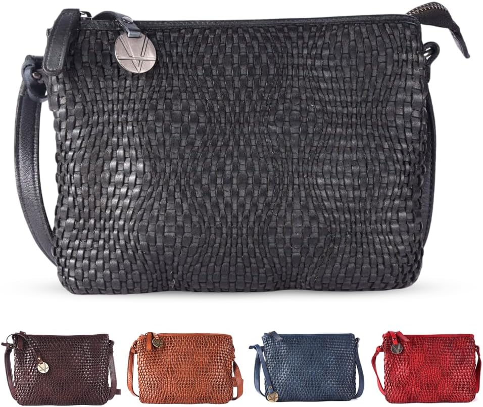 Elevate your style with our exquisite Genuine Leather Women bag featuring an intricate weaving design. Crafted to perfection, this bag is a blend of timeless elegance and modern functionality. Measuring 23 X 9 X 27 CM, it strikes the perfect balance between spaciousness and a sleek silhouette. Unveil convenience with the two exterior zipper opening, providing quick and easy access to your essentials. Inside, you'll find a well-thought-out organization system, including a zipper pocket, ideal for securing valuables, and a mobile pocket for your smartphone. Additionally, a main compartment enhances the interior's functionality, ensuring you have a dedicated space for all your belongings. Carry this purse comfortably with adjustable shoulder straps designed for a personalized fit. The handle drop length of 29.5 inches offers versatility in carrying options high quality fittings. Crafted from genuine leather, this bag is a testament to quality and durability, ensuring it will withstand the test of time. Choose from a range of sophisticated colors, including Black, Brown, Grey, Cognac, Navy, and Red, to suit your unique style and preferences. Despite its robust construction, this bag remains lightweight, weighing in at just 0.3 grams, making it an ideal companion for your daily adventures. With the trusted brand, Vilenca Holland, you can be assured of superior craftsmanship and attention to detail. With a total of five pockets, this Genuine Leather women crossbody bags offers versatility, style, and functionality like no other. Elevate your everyday carry with a touch and experience the perfect blend of fashion and utility. Order yours today and make a statement wherever you go with this remarkable creation by Vilenca Holland.