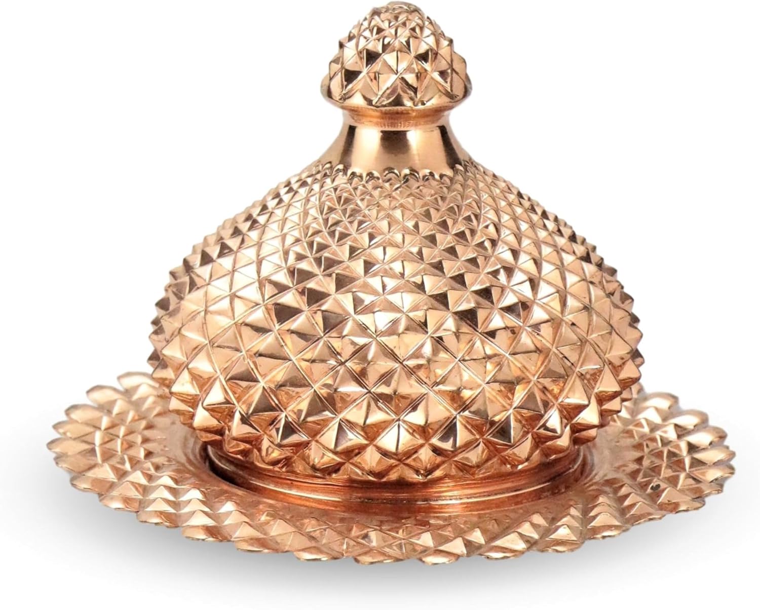 Experience the elegance of traditional Turkish craftsmanship with our Handcrafted Sadrazam Pyramid Copper Coffee Pot. Each piece is meticulously crafted with intricate chisel engravings, adding a touch of sophistication to your coffee experience. The set includes one copper coffee pot and one matching tray, making it perfect for serving Turkish coffee in style. Before first use, wash the teapot with warm soapy water and dry thoroughly. To maintain its finish, avoid using abrasive cleaners or metal utensils. Hand wash only and dry immediately to prevent tarnishing. Periodic re-tinning of the interior may be required for optimal performance.