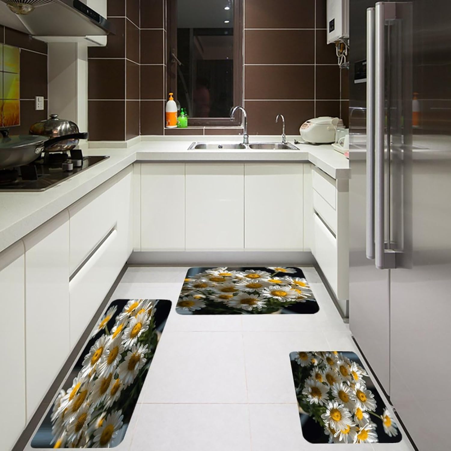 Transform your daily routine with our 3PCS Kitchen Mats for Floorโa set that combines comfort, style, and practicality. As a Cushioned Anti-Fatigue Kitchen Rug, it provides a soft, supportive surface to ease the strain of long hours standing at the sink or stove. The Non-Slip Standing Sink Mat design ensures it stays put, even on busy kitchen floors, while the Waterproof Non-Slip Kitchen Mat feature repels spills for quick cleanup.This versatile set isn't just for kitchens. Use the Kitchen Floor Mat in your office to create a more comfortable standing workspace, or place the Non-Skid Standing Mat in the laundry room to cushion your feet while folding clothes. As a Kitchen Decor Runner Rug, it adds a cohesive touch to any room, blending with both modern and farmhouse decor styles seamlessly.Crafted with pill-resistant flannel, these Comfort Kitchen Mats are built to handle daily use without losing their softness or shape. The Farmhouse Kitchen Rugs design brings a warm, inviting feel to your home, while the Waterproof Non-Slip Kitchen Rug functionality ensures long-lasting use. Easy to clean and quick to dry, this set is a practical and stylish addition to any space, from cozy kitchens to busy office floors.