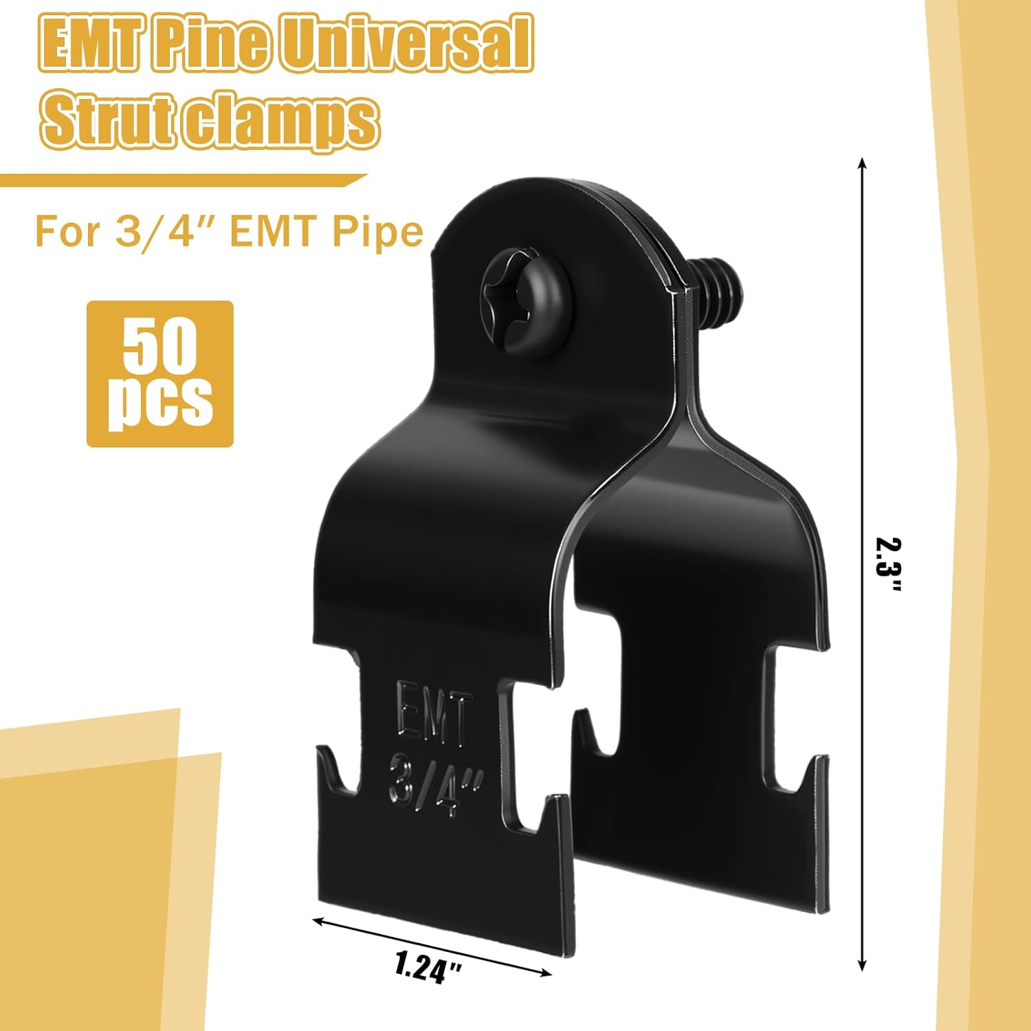 Features: Pipe repair clamp is a nice household helper for their sturdy and reliable design, ease of installation, and wide applications. The conduit fittings are a nice gift for your close friends or family if they have the demand of clamps to enhance your relationship. Specifications: Material: electro galvanized Color: black Size: as shown picture Package includes: 50 x EMT pipe universal strut clamps Notes: Manual measurement, please allow slight errors on size. The color may exist a slight difference due to different screen displays