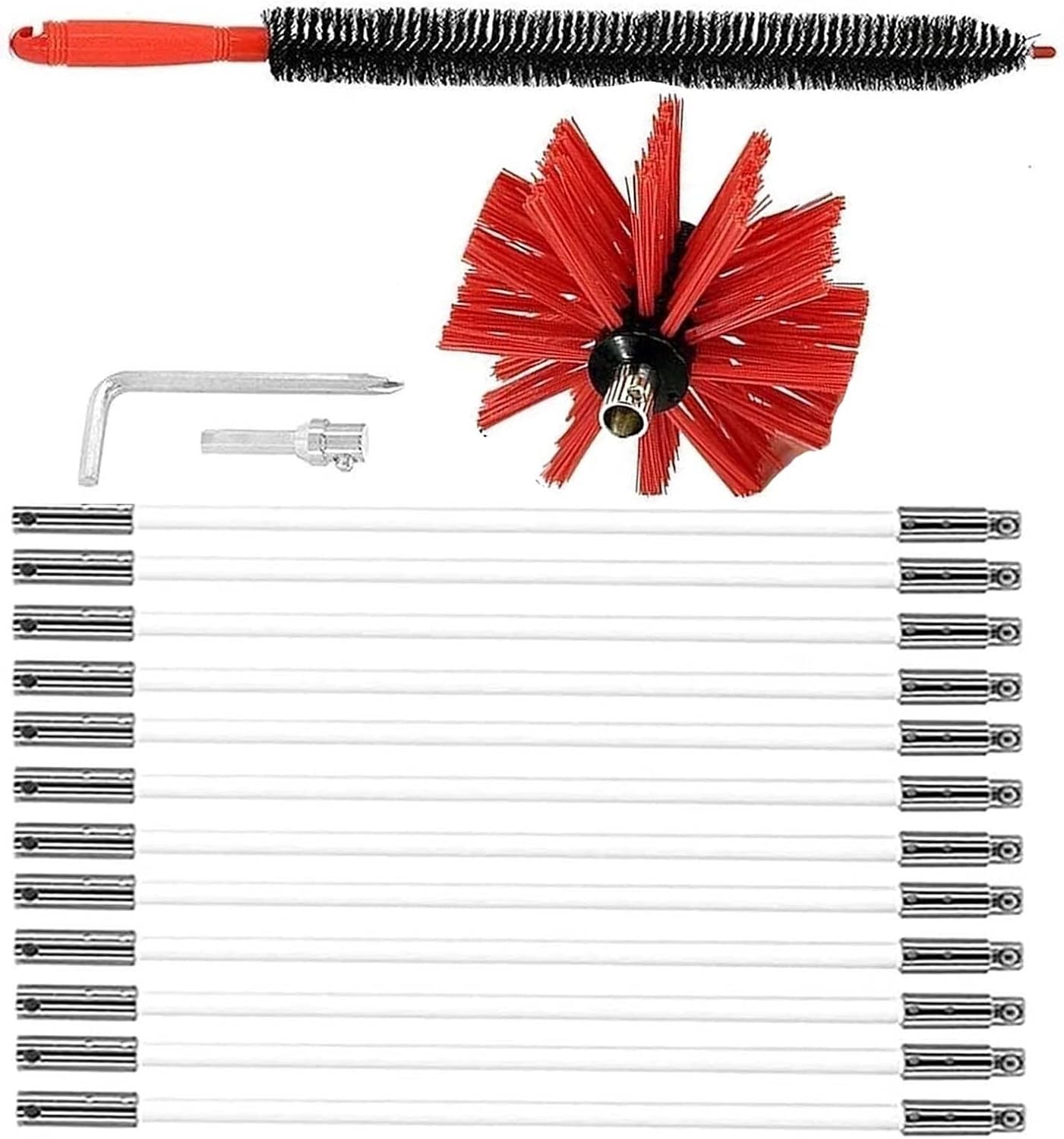 Chimney Sweep Kit Flexible Dryer Vent Brush Cleaning Kit Synthetic Brush Head Lint Remover Fireplace Chimney Brushes Chimney Cleaning ToolProduct Description:Main Material:NylonBrush Height:35mm / 1.37"Quantity:1 SetFeatures:Perfect for cleaning your chimney from the top down or up through your fireplace. Cleaning your stove by yourself and save money.Can be used with an electric drill, with the help of large rotational force, the bristles can remove even the most stubborn build up inside the flue or chimney. Helps prevent flue fires.Brush head made of nylon material, high-temperature resistance, anti-aging, not easy to corrode, making the sweep more efficiency. Also, it won‘t scratch the inner surface of the chimney flue.Easy to assemble and disassemble, and you can connect multiple rods to extend your reach. The rods are flexible which can perfectly get through those tough flue bends.Package Included:1 Set x Chimney Brush Rod KitHow To Use:Step 1: Connect the rods TWO by TWO;Step 2: Attach the bristle with rods;Step 3: Put the brush into the flue;Step 4: Slide the rod into the flue;Step 5: Attached the drill with the rod;Step 6: Start cleaning the chimney.Notes:1. Please allow 1-3 cm difference due to manual measurement and 3-5 g for the difference between different colors.2. Due to the screen difference, the color may be a little different from what you expect, please allow it.chimney sweep kit cleaning extends up to 30 feet cleaner tools system with brush 9 flexible rods dryer duct 2-in-1 fireplace drier vent lint sweeping drill attachment synthetic head rod remover dry long nylon rotary drive kits reusable 18 ft