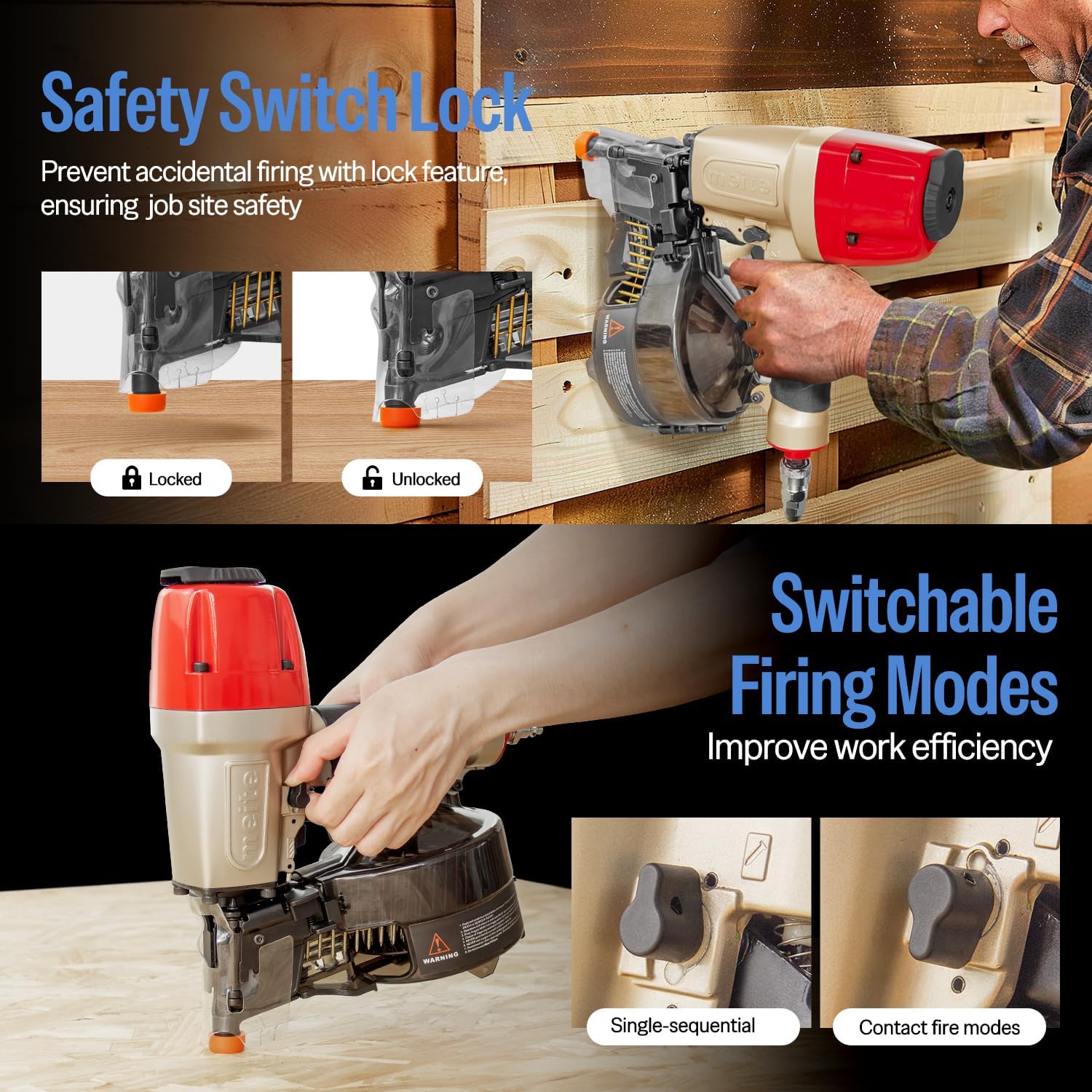 | Included Components | 1 PC Protective Glasses, 24h Customer Services, 3PCS Hexagonal Wrenches, CN65S Pneumatic Coil Siding Nailer, Instruction Manual |