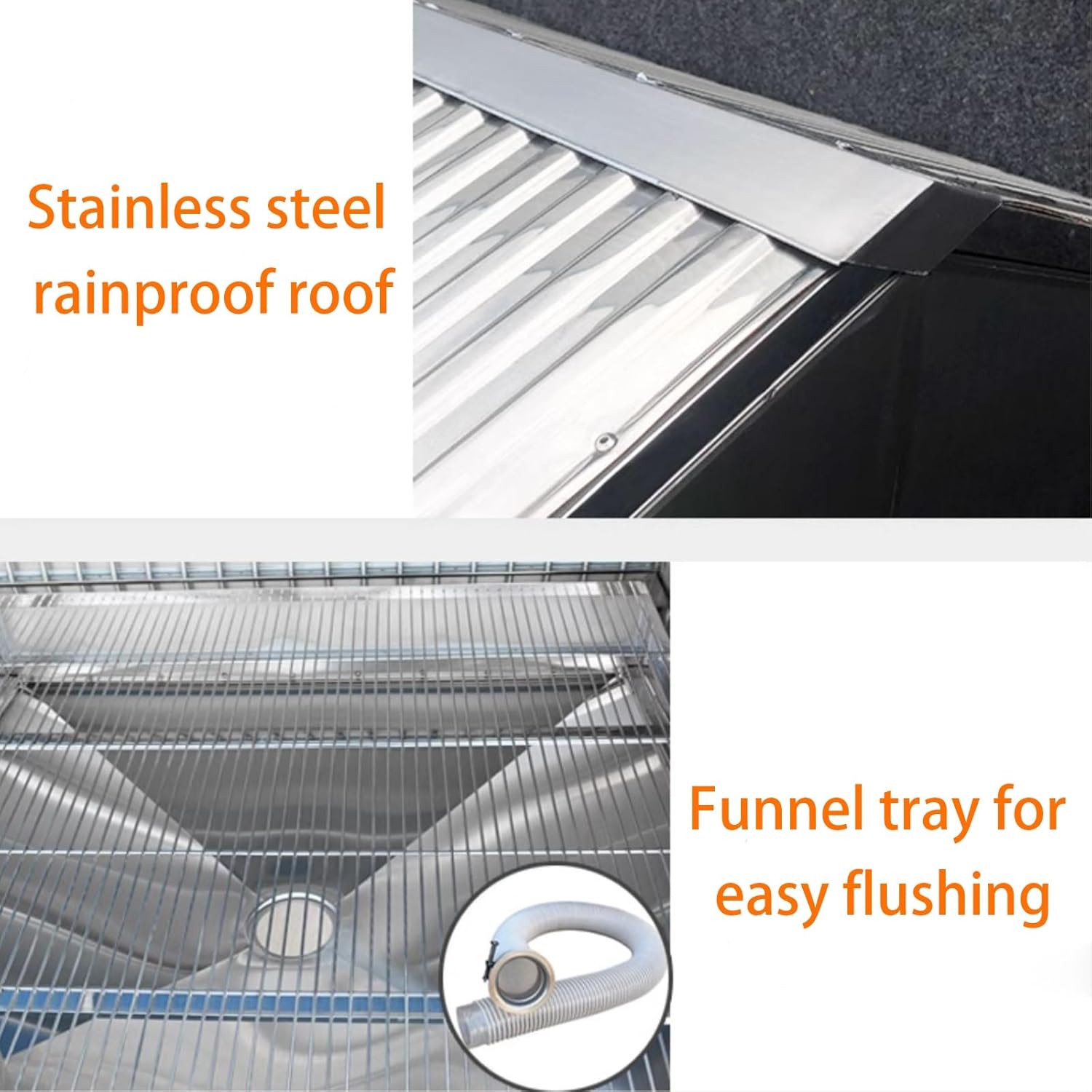 Description: Built from high quality stainless steel, this large rabbit hutch will be a great addition both indoors and outdoors. The mesh ensures ventilation and keeps rabbits in and predators out. Specifications: 1.Material: Stainless steel 2.Color: Silver 3.Size: 100 X 70 X 110 cm (39.4 X 27.6 X 43.3 Inch) 120 X 70 X 110 cm (47.2 X 27.6 X 43.3 Inch) 130 X 70 X 110 cm (51.2 X 27.6 X 43.3 Inch) 150 X 70 X 110 cm (59.1 X 27.6 X 43.3 Inch) Packing list: 1 x Chicken coop Note: Manual measurement, there may be minor errors, please refer to the actual product, please understand. Each photo is taken in kind, but the color difference is small due to the difference in light, display and personal color.