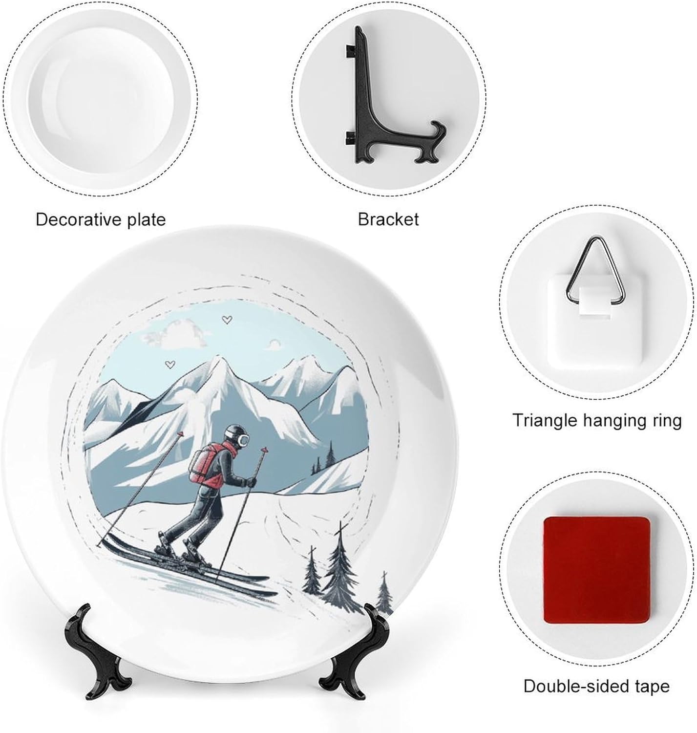 Our versatile ceramic Skiing Theme plates are made of smooth ceramic material. The lightweight bone china plates can be easily placed anywhere you like, showcasing their decorative charm.This bone china dessert plate is available in four sizes: 6 inches, 7 inches, 8 inches, and 10 inches, making it an ideal choice for display items.Personalized decorative plates, perfect for displaying handicrafts, are an ideal choice for home décor. This vertical ceramic plate makes a wonderful gift for housewarmings, anniversaries, weddings, birthdays, Thanksgiving, New Year's, or any holiday.This French country-style ceramic plate is suitable for decorating or using in living rooms, offices, hallways, dining rooms, entrances, hotels, holiday homes, and other places.
