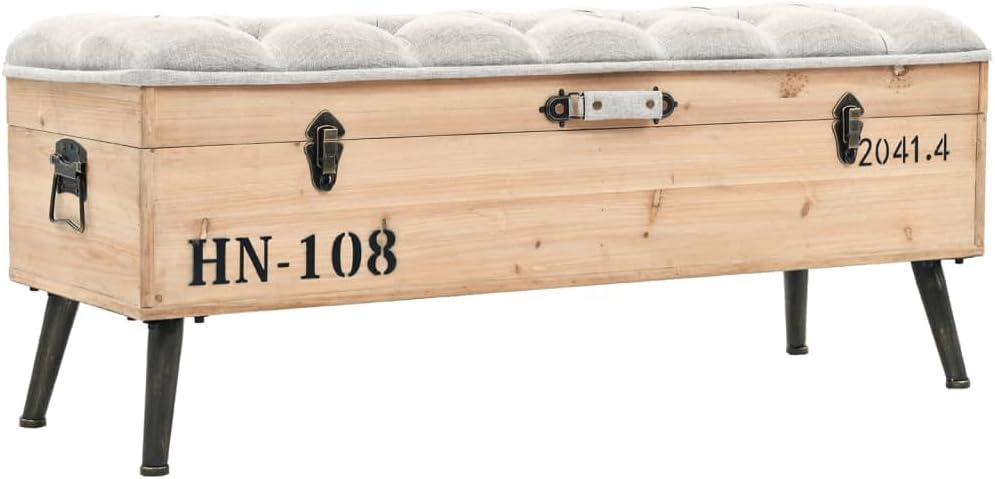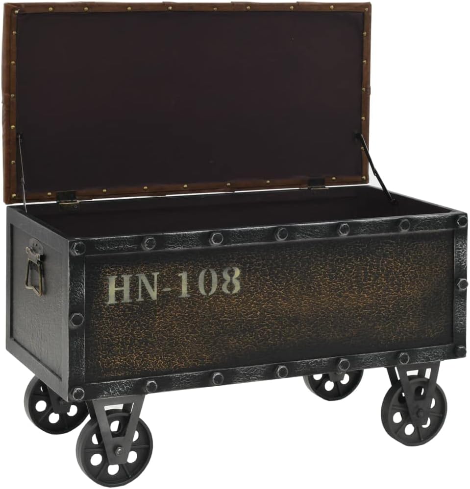 This storage bench with castors in the shape of a travelling trunk makes a unique addition to your room.Durable material: The storage box is made of solid fir wood covered in faux leather. Solid fir wood is a beautiful natural material. Fir wood doesn't dry out or warp when exposed to moisture.Ample storage space: The storage space makes it easy to keep things organized.Flexible design: Thanks to its 2 side handles and 4 wheels, the bench can be easily moved and placed in any room.Comfortable seat experience: With the thickly padded seat, the hall bench is highly comfortable.Note:Each product comes with an assembly manual in the box for easy assembly.Color: BrownMaterial: Solid fir wood, engineered wood, faux leather(60% PU, 30% polyester, 10% cotton), plasticDimensions: 31.7" x 16.1" x 19.7" (L x W x H)