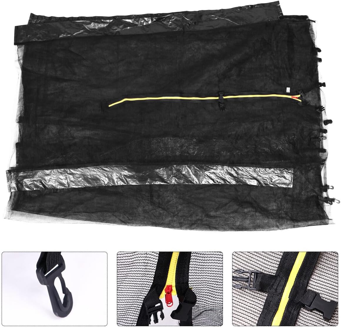 Package Include 1 x Trampoline Protective Net Features - Color: Black. -Product Info:Bed and Bed Protection Net - Size: 240.00 x 160.00 x 0.20 cm/ 94.32 x 62.88 x 0.08 inch. - Material: Nylon + PP. - Open from the inside with zipper and open from the outside with zipper and spring hook Trampoline Protective Net. - Enclosure netting with zipper and quick-lock buckles, able to protect the from bouncing out of the mat and contacting with the frames Bounce Protective Net. - This heavy-duty trampoline is a gift for and a great addition to your backyard Bounce Safety Enclosure Net. - High density mesh makes it solid and durable, and good weave to ensure little fingers cannot become trapped. - Made of premium polyester material, it is practical and safe to use.Goods InformationTrampoline Protective Net You can now relax inside your home while your are jumping outside! safety net will ensure maximum safety for your and no need for constant supervision anymore