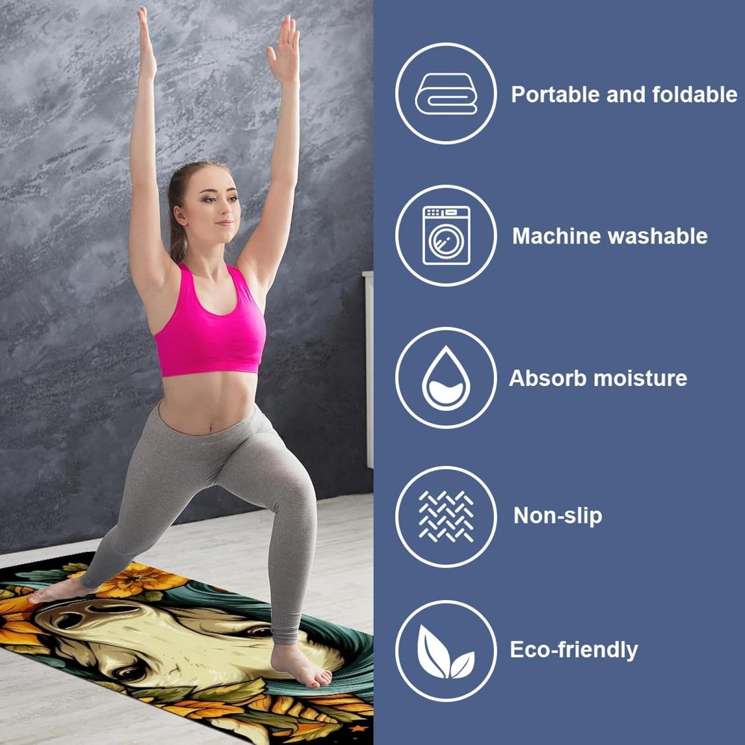 MUOOUM Yoga Mat Towels - Available in A Variety of Awesome Patterns Eye-catching Pattern These vibrant patterns will make your workout more enjoyable. Easy Carrying Yoga Towel for Travel Lightweight and compact, the towel can keep your bag weight down on the go. Easily pack & store inside the mesh travel bag to take to classes, gym, travel, camping, beach & more. Features: * Material: Suede fabric * Size: 72.8x26.8 in / 185x68 cm * Thickness: 0.04 in / 0.1 cm * Weight: 1500g * Color: As the picture shows Package Includes: 1 x Yoga towel 1 x storage bag Tips: 1. Due to the shooting angle and shooting light problems, the product is allowed to have a slight color difference 2. We offer customized services, you can customize special styles for family and friends, if you need, please feel free to contact us