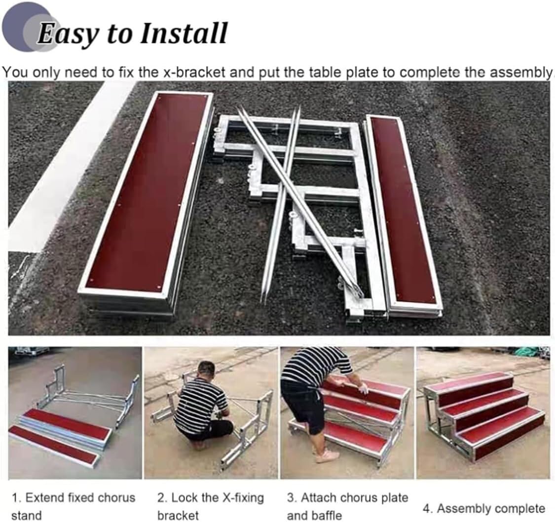 Elevate your performances with our premium choir steps, designed to provide reliable support for groups of all sizes. Whether you're in a classroom, a concert hall, or preparing for a group photo, our choir stands create a relaxed and elegant atmosphere for every occasion. Crafted from durable plywood and galvanized steel, our two-tier choir steps can comfortably accommodate up to three people per tier, with an impressive load-bearing capacity of 500 kg (1102 lbs) per tier. With dimensions of 128 x 60 x 40 cm (50 3/8 in x 23 5/8 in x 15 3/4 in), these stands are compact yet sturdy, ensuring safety and stability during use. Key features include: - Long-lasting construction that withstands regular use. - An anti-slip surface that enhances safety for performers. - Quick assembly design, allowing you to set up in minutes and focus on your performance. - Versatile use for various environments, including schools, business events, and performances. Our choir steps not only boost the visual appeal of your stage but also enhance the overall experience for both performers and audiences. Enjoy the convenience and reliability of our choir stands, making every event memorable. Package includes: 1 x Choir Stand Please note: The product color may vary slightly due to lighting and screen differences, and dimensions may have minor manual measurement variations. Thank you for your understanding.