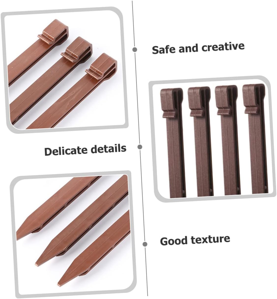 Package List 30 x plastic ground stakes Features -Color:Coffee plastic garden stakes -Material:Plastic Gardening Lawn Pegs -Size:24.50X2.00X1.50cm/9.63X0.79X0.59in lawn stake - The plastic ground stakes the widely used in agriculture, gardening, vegetable garden, tent and more plastic landscape stakes. - Made of good material and workmanship, it can be used for a long time, tough and reusable lawn edging spikes. - These ground spike stakes are perfect for anchoring tents, canopies, tarps, landscaping or garden plants Plastic Garden Stake. - These yard stakes for are versatile, suitable for camping tents and artificial grass turf, and ground net yard stakes. - These gardening stakes are made of , they are and very efficient landscape edging stake.Goods Informationlawn edging tool This gardening stake is manufactured with for and use.Gardening Lawn Pegs Made of and material, the ground stakes are .anchoring plastic ground stakes Secure everything firmly in place.landscaping spikes craftsmanship and good material make it look simple yet