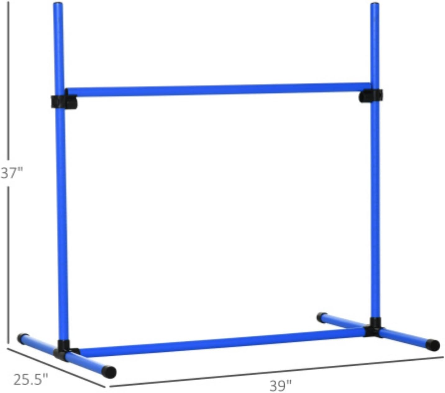 This set of jumping poles allows you to perform more challenging training. Use the play set on grass or any flat ground to take your dog obstacle course anywhere. It can be adjusted to any height to suit your pet's ability and can be fixed to any surface, from concrete to grass to dirt. It's lightweight enough to carry in a handbag, making it perfect for training and strengthening your pet anywhere. Product Information Product Type:General Item Product Name:4 Piece Dog Agility Training Equipment Main Color:Blue Main Material:ABS Product Dimensions Assembled Length (in.):39.00 Assembled Width (in.):25.50 Assembled Height (in.):37.00 Weight (lbs.):9.90