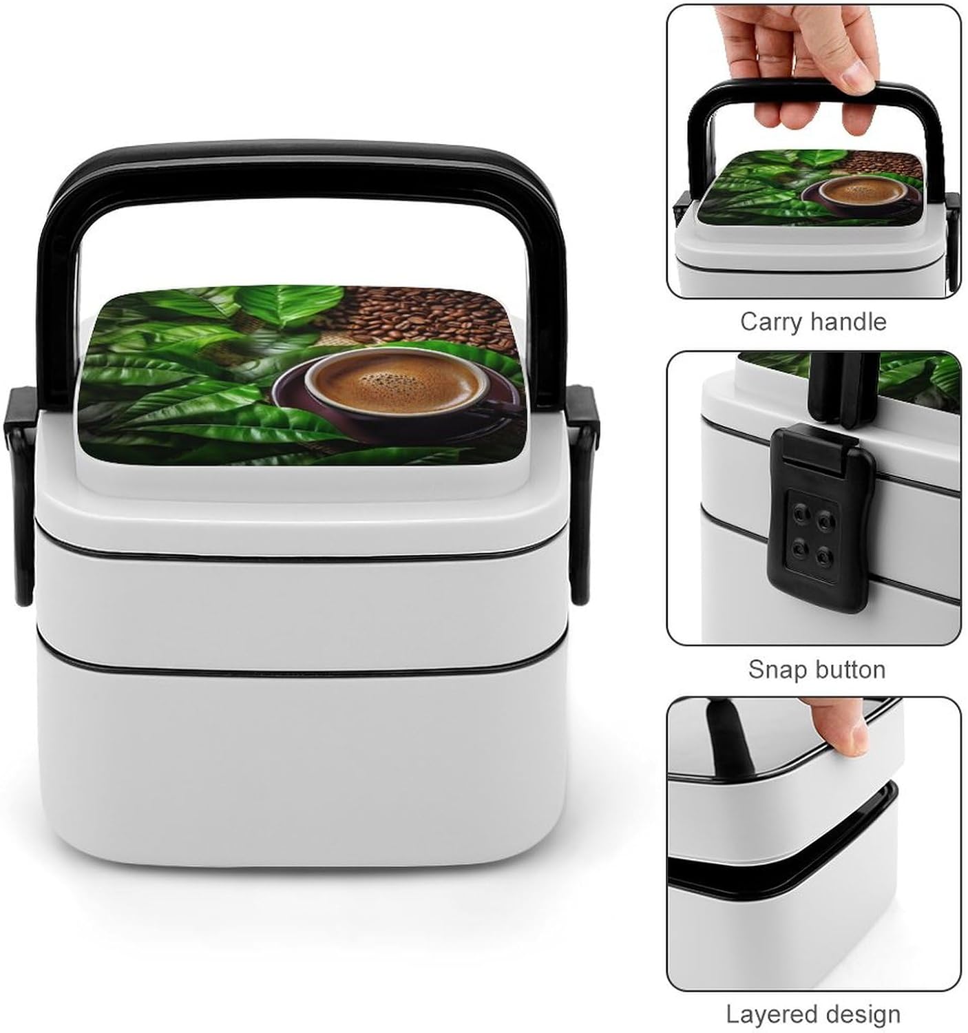 This box adult Bento Box is a must - have for those who are always on the go. Made from high - quality PP material, it's not only sturdy but also safe for storing foodThe double - layer design:lunch box large for women The tight - fitting seal ensures that no food leaks out, whether it's a juicy salad or a soupy dish. Plus, it keeps the food's smell inside, so you don't have to worry about any unpleasant odors in your bagThe clever divider design is another highlight:Coffee And Green Leaves cooler lunch box It allows you to neatly separate different types of food. You can put your fresh vegetables in one section, fruits in another, and some snacks in the third. This way, each food item retains its original taste, giving you a wonderful dining experienceCarrying this bento box is a breeze:modern bento The snap - lock mechanism makes it easy to open and close, and the attached handle means you can carry it around effortlessly. Whether you're going to work, on a camping trip, or just out for a day of fun, this bento box is your perfect companionadult bento:Suitable for traveling, taking meals to work, taking fruits, camping and traveling, very light and portable. Washable and reusable. [Special Instructions] Note: This product cannot be put into the microwave