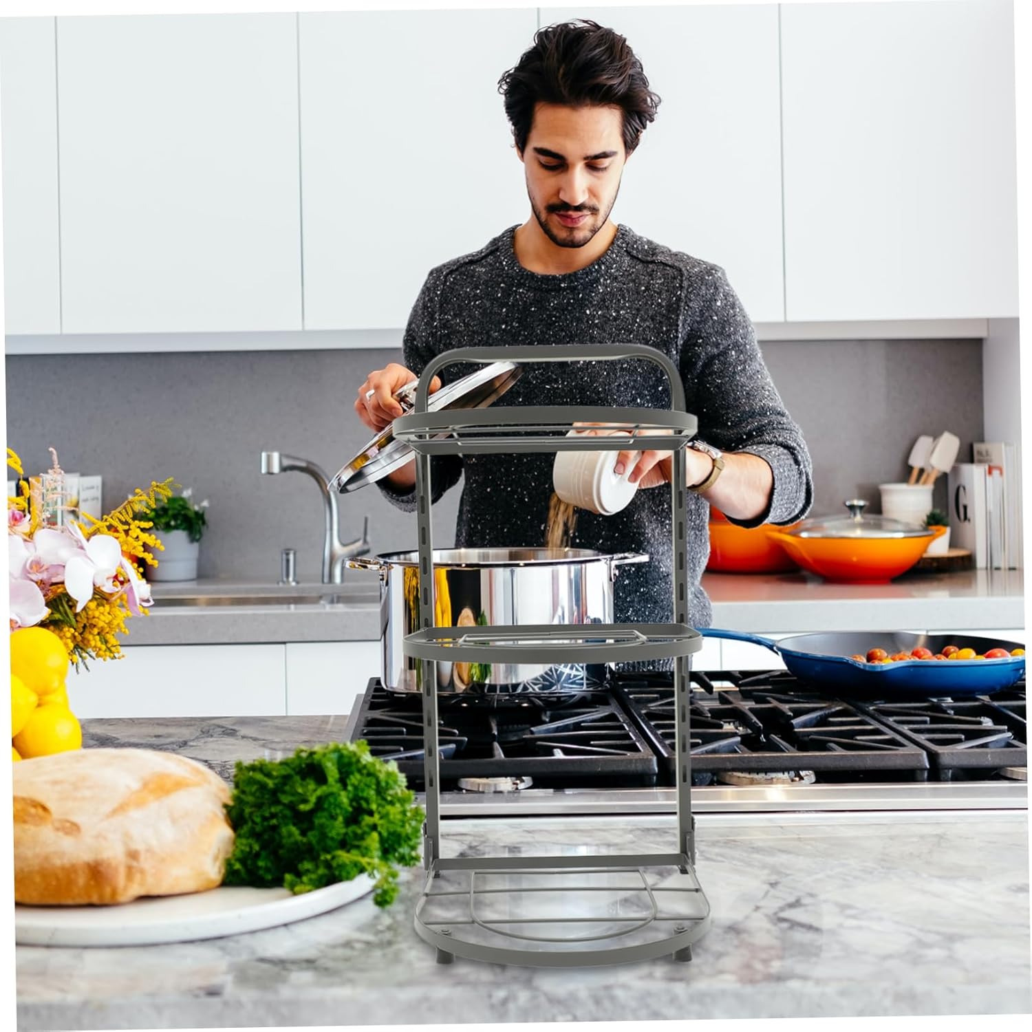 Package List 1 Features -Size:40.50X27.00X22.00cm/15.92X10.61X8.65in pots and pans organizer -Material:Carbon steel sink -Color:Grey desktop pan rack -Household Pan Organizer is foldable, designed to fit under kitchen sink cabinets, maximizing space utilization foldable pot rack. -Multipurpose, not only as a cabinet pot storage rack, it also can be used as a countertop spice bottle holder rack rack. -Multi-functional, the storage rack is suitable for steam pot, saucepan and pan with various thickness organization. -The rack is designed with strong stability, not easy to break, and home accessory. -Multi-layer design storage shelf, convenient and compact, space-saving, can make full use of the kitchen vertical space can.Goods Informationkitchen pan organizer Easily foldable for convenient transportation and compact storage.draining pot rack Made of carbon steel material, the pot storage rack is strong and , and wear-proof.pan rack for cupboard With a simple structure design, the pot organizer rack is easy and convenient to install and detach, to use