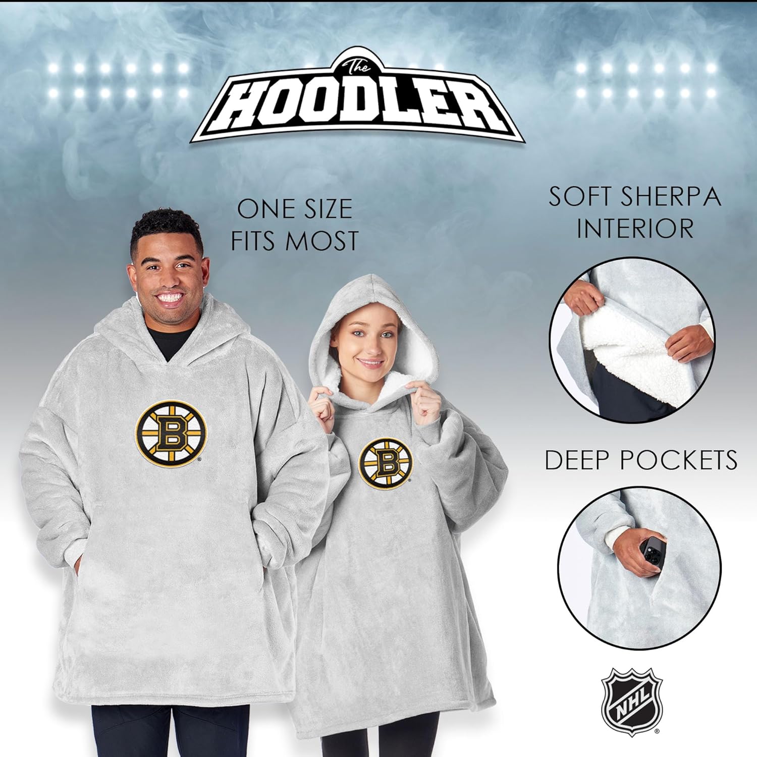 Cozy comfort takes center stage with the Hoodler, designed for relaxed wear while showcasing NHL team pride. Made from soft sweatshirt fabric with a plush sherpa feel, this oversized pullover features a roomy silhouette, attached hood, and large front pocket to keep hands warm or hold small essentials. The embroidered team graphics on the front and back deliver a premium, textured look that stands out whether you are watching from home or heading out on a cold day. Its extended length and drop shoulder design allow for easy movement and comfortable layering over jerseys, tees, or thermals. Lightweight yet warm, it provides dependable coverage for colder conditions and everyday wear. Whether watching the game or relaxing on the couch, this wearable blanket sweatshirt delivers lasting comfort throughout the season.