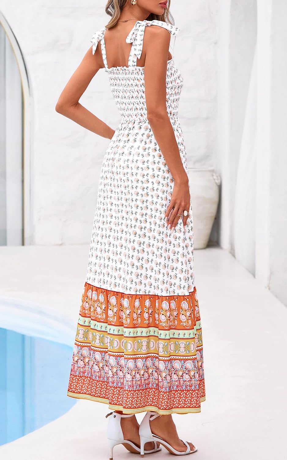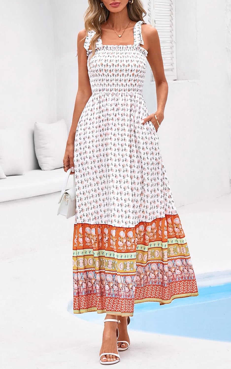 | Embellishment Feature | Elegant Wedding Guest Dresses for Women, Flare A Line Dress with Pockets, Flowy Floral Maxi Dress for Women, Sleeveless Smocked Summer Dresses, Tie Strap Boho Long Dresses |