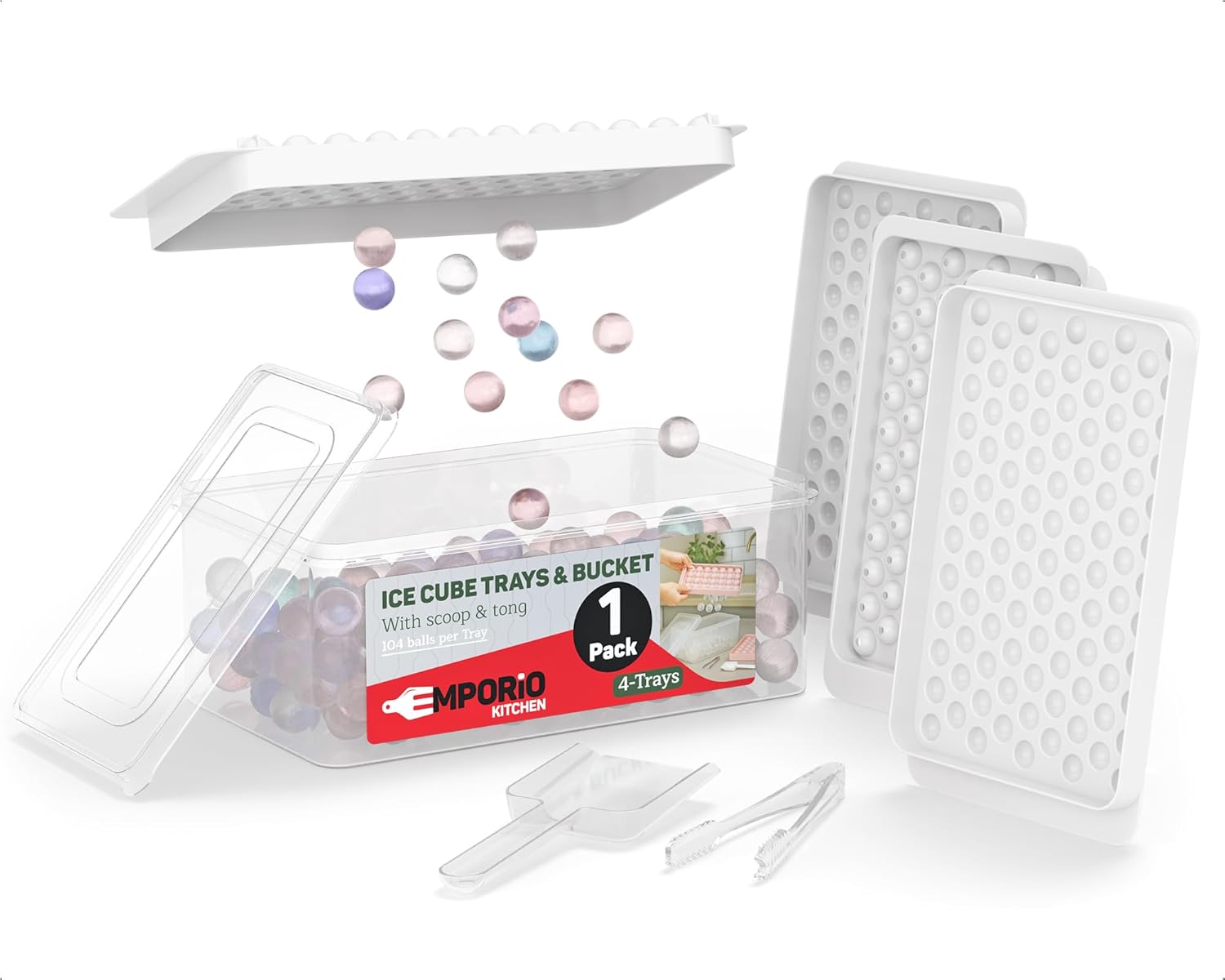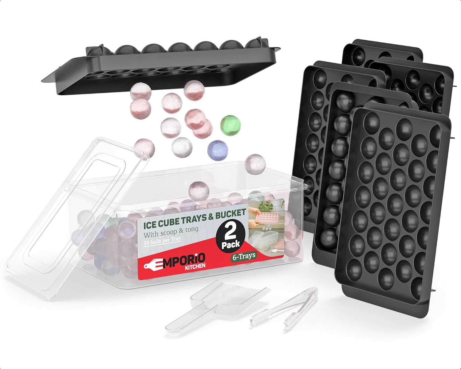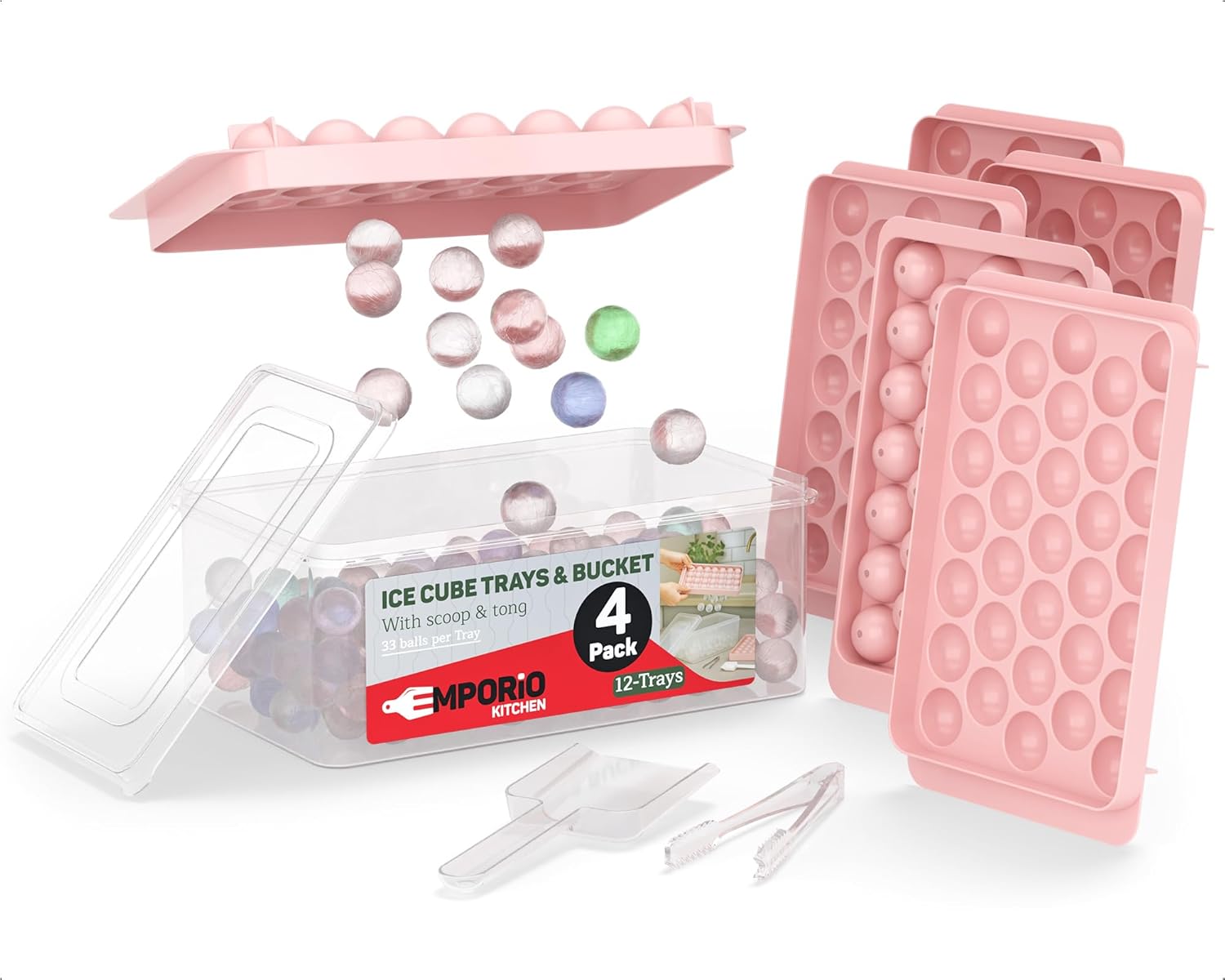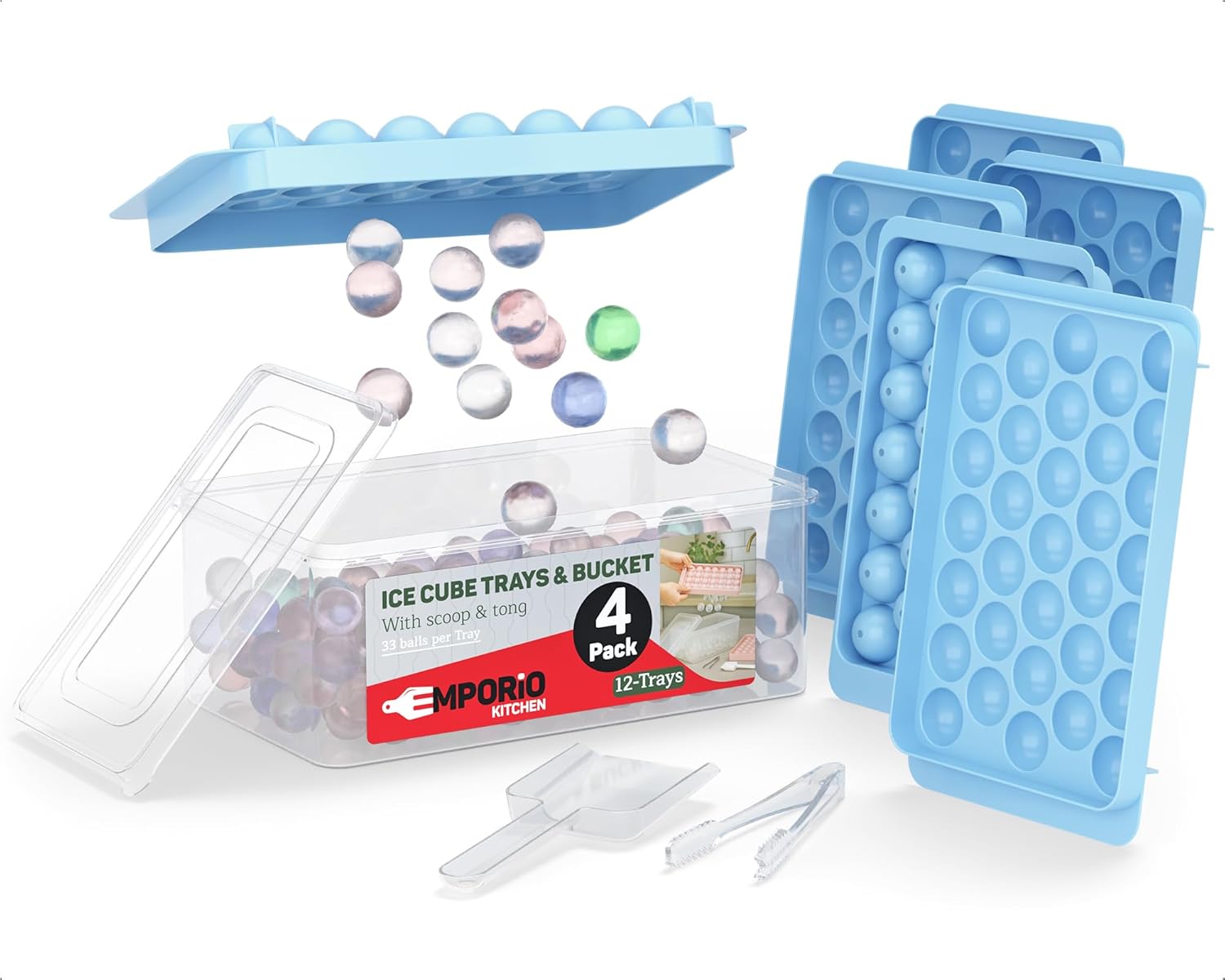 Upgrade your chill game with the Emporio Kitchen Round Ice Cube Tray Set—designed for those who love their drinks cool, classy, and clutter-free. With four ice trays producing a total of 416 perfectly round 1.5cm ice balls, you’ll have more than enough to keep your cocktails, coffee, or smoothies frosty and fresh. Made from BPA-free, food-grade PP plastic, each round ice cube tray is safe, odor-resistant, and built to last—because clean ice should always come standard. Getting the ice out is a breeze thanks to the flexible, twist-and-release design. No more cracking trays or battling stuck cubes. The included airtight lid locks out freezer odors, while the matching bin keeps your ice organized and ready to scoop. Speaking of which, we’ve even included a durable plastic tong so you can serve in style without getting your hands cold. Whether you’re freezing fruit-infused water, crafting cocktail garnishes, or just prepping for a hot day, this small round ice cube trays set is your go-to freezer companion. Compact, stackable, and refreshingly easy to use—it’s the perfect blend of function, fun, and freezer-friendly design.