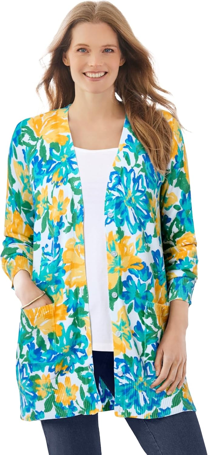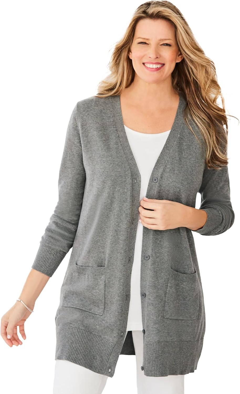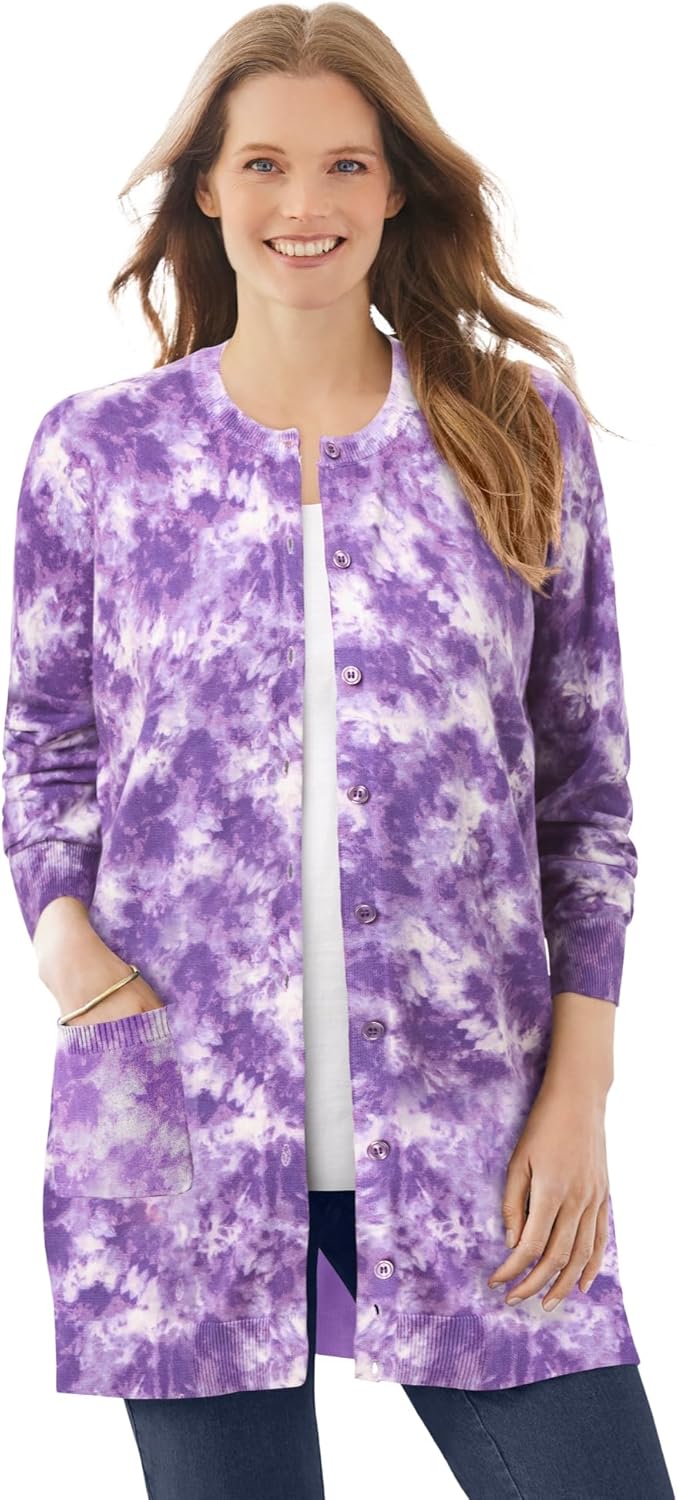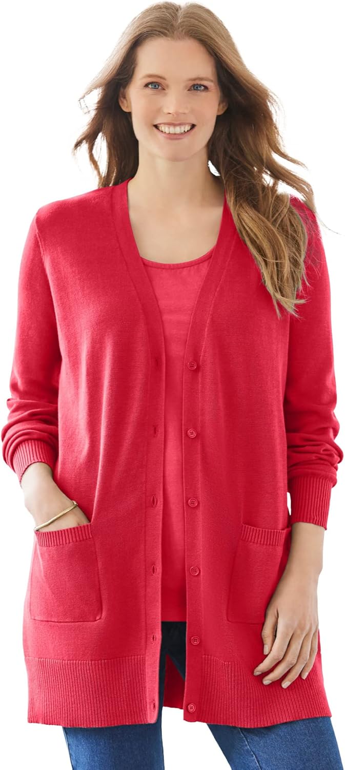 Experience ultimate comfort with the super soft and cozy Perfect Longer-Length Cotton Cardigan. br> Enjoy flattering coverage and a versatile style that pairs beautifully with any outfit. br> Constructed from 100% cotton for a breathable and comfortable wear all day long. br> Features a 32" tunic length for elegant, elongated lines that enhance your silhouette. br> Stylish front pockets add both functionality and charm to this essential piece. br> Effortlessly maintain this wardrobe staple with easy, machine-washable care.> Imported